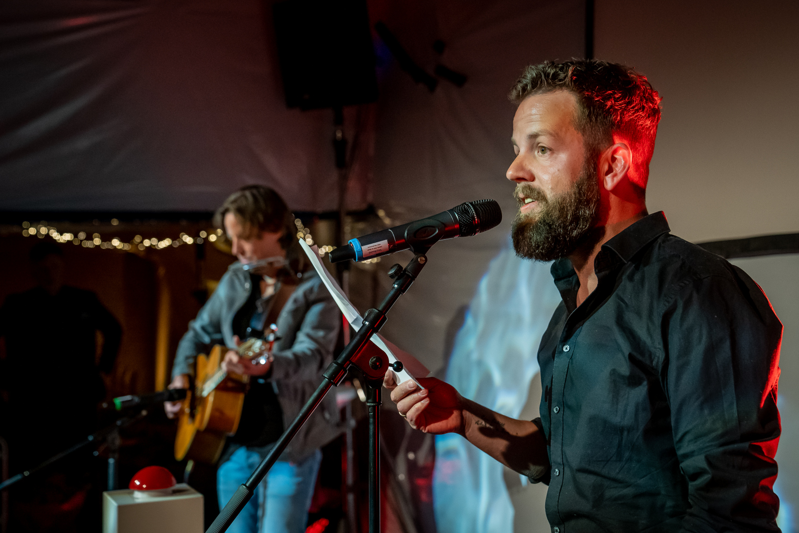 Naast verlichting van het magazijn, hebben wij ook de toegangstunnel verlicht, zodat de bezoekers bij binnenkomst gelijk in een de stemming kwamen en daarnaast nog het geluid verzorgd voor diverse sprekers, acts en artiesten.